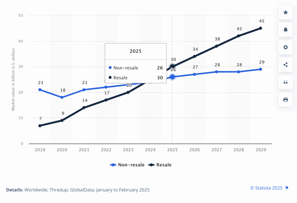 This forecast shows the expected rise in the second-hand apparel market through 2029. Supporting the expected popularity of homemade costuming during the following season.