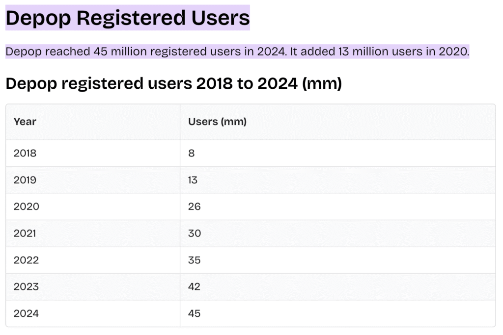 Depop Registered Users 2018-2024- Bussinessofapps.com