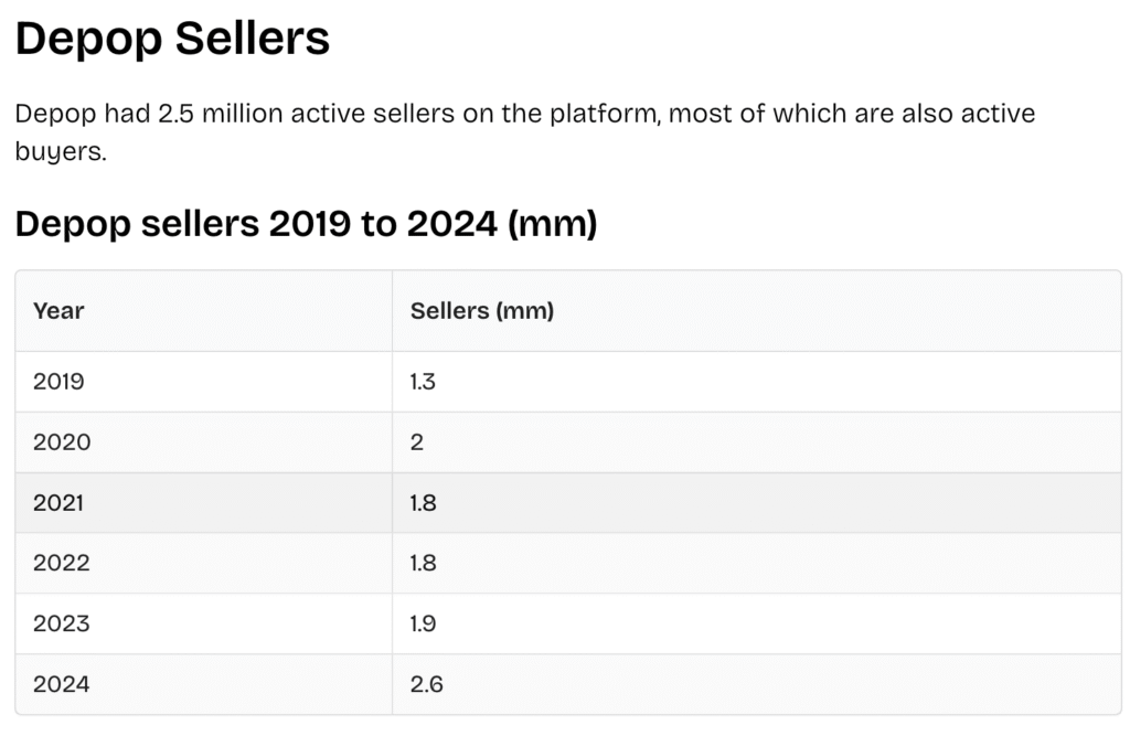 In 2020, Depop had its most registered users and sellers at the time. With around 2 million sellers grossing over $650 million in merchandise sales. Remaining the most Depop had generated until 2023.